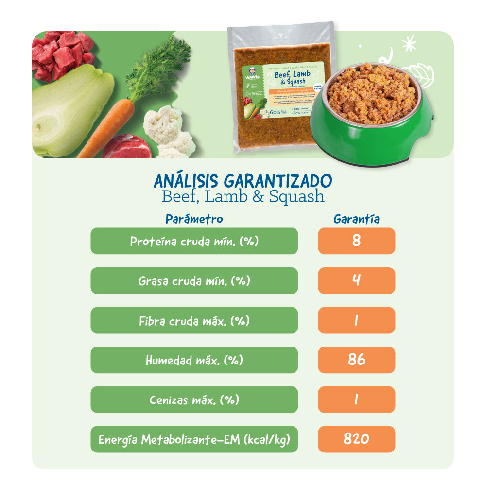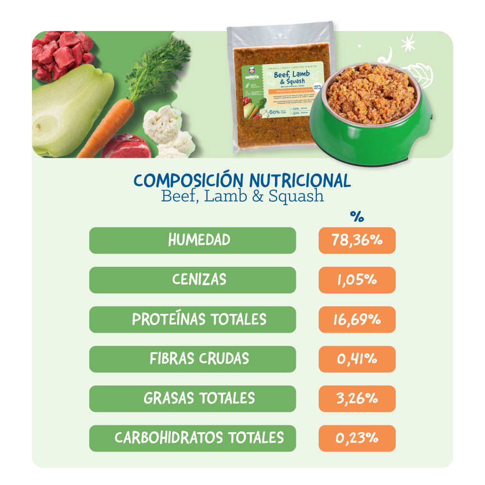 Beef, Lamb & Squash es más que comida: es salud, sabor y amor en cada plato. ¡Tu perri-hijo lo disfrutará al máximo!