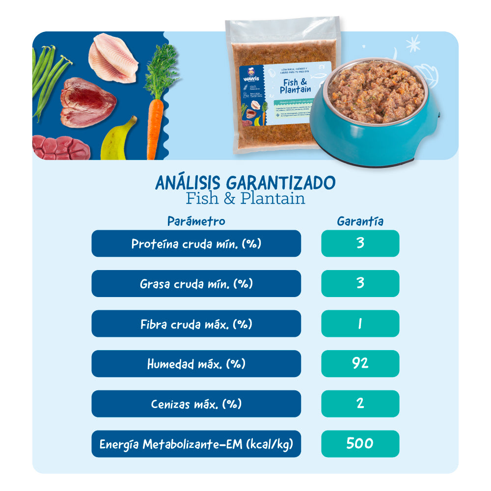 Aprobada por los expertos del Wawis Gang, esta receta de Fish & Plantain combina ingredientes naturales y deliciosos que brindan una experiencia culinaria irresistible para tu perri-hijo, mientras cuidas su salud y bienestar.