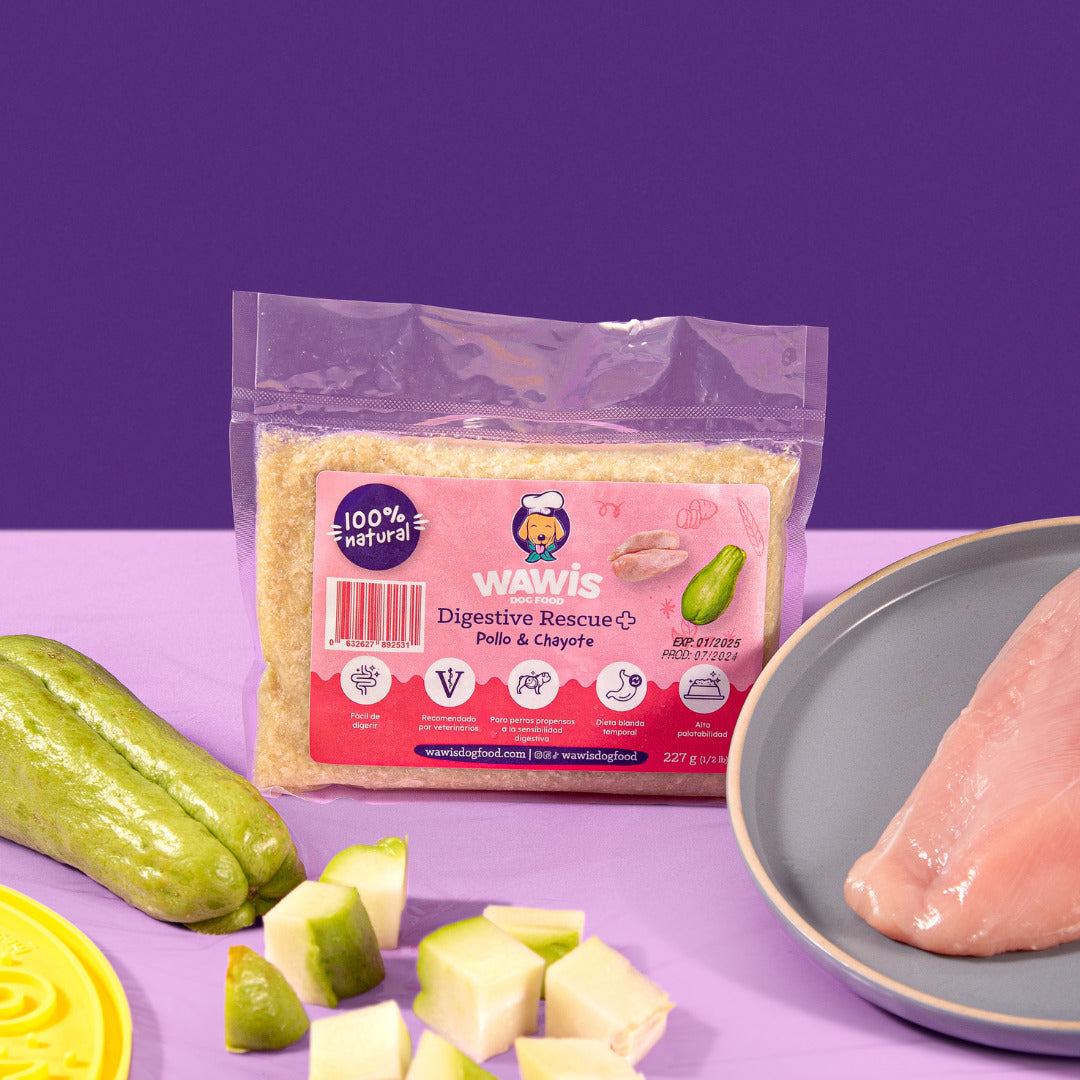Digestive Rescue – Pollo & Chayote es el equilibrio perfecto entre salud y sabor. Dale a tu peludo una dieta natural que lo hará sentir bien por dentro y por fuera.